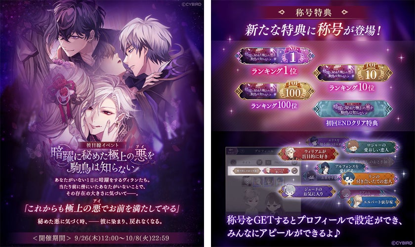 - 『イケメンヴィラン 闇夜にひらく悪の恋』が9月28日に1.5周年を迎え、初の公開生放送イベントを開催。