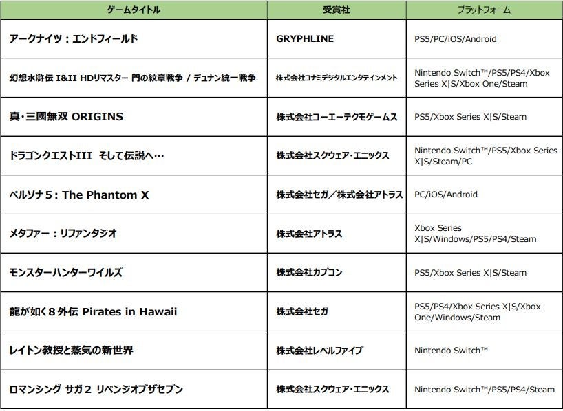 - 詳細は日本ゲーム大賞2024の公式サイトで確認可能。