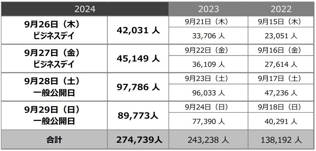 【TGS2024】来場者集計速報 リアル会場への4日間の総来場者数27万4739人です。