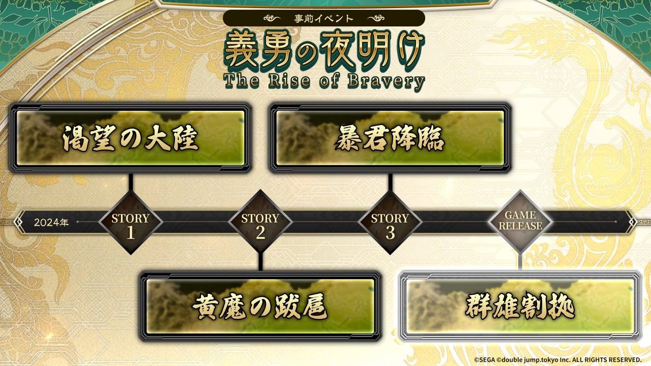 事前イベント「義勇の夜明け」は、ゲーム本編に繋がる歴史イベントで、近日開催予定です。