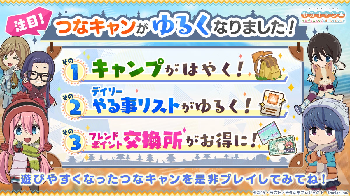 - 株式会社enishがゆるキャン△のオンラインゲームを開催