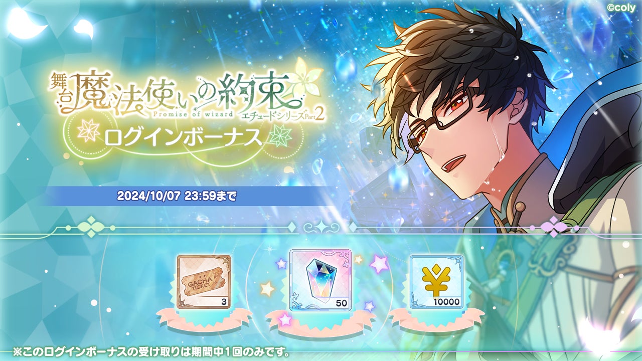 さらに、ゲーム内では舞台開催を記念して、10月1日(火)12:00よりログインボーナスが配布されます。