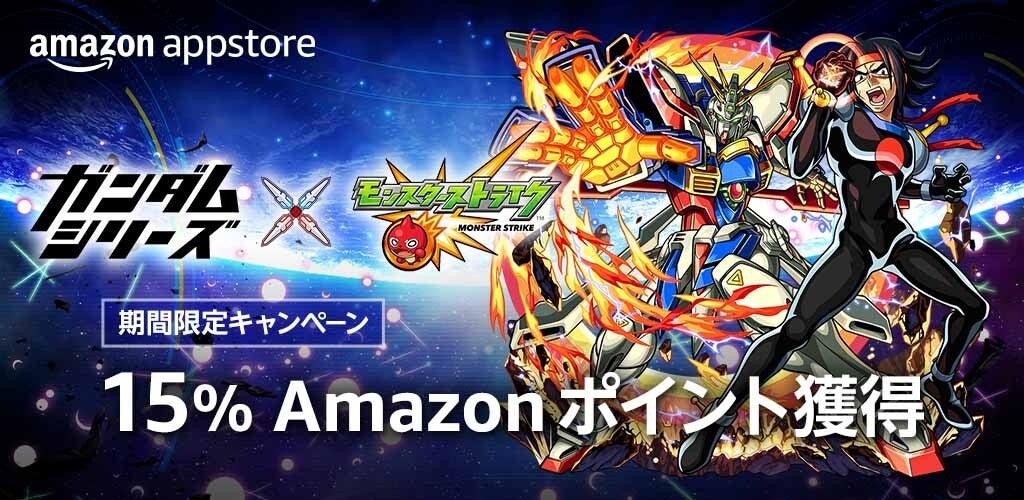 - Amazonアプリストアで「モンスターストライク 15%ポイント獲得キャンペーン」を開催中(10月1日~16日)。