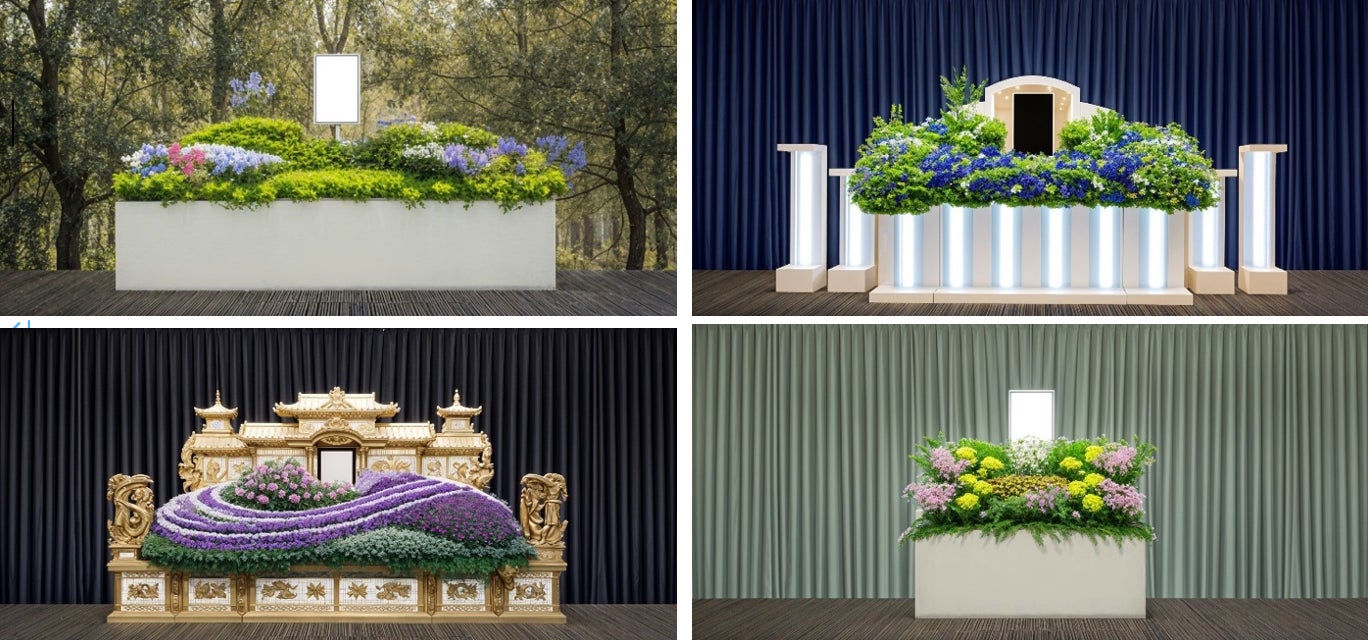 花の色、形、予算などの情報を入力するだけで、AIが約2,000枚の祭壇データを学習し、新しい生花デザインを自動生成します。