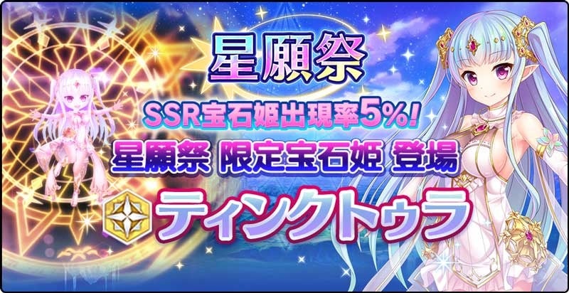 そして、2周年を記念して期間限定宝石姫『ティンクトゥラ(フルブライト)』が登場する星願祭ガチャも開催中!ティンクトゥラの育成・強化に役立つアイテムが手に入る「ティンクトゥラ装備パック」も期間限定で販売されます。
