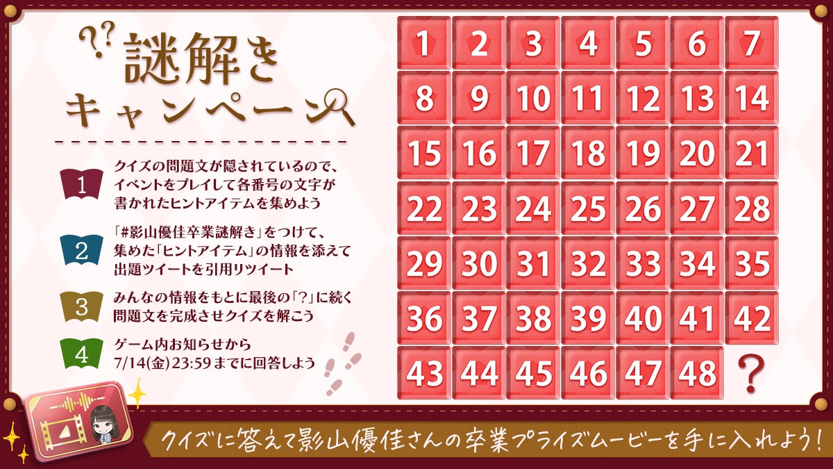 - 影山優佳さんの卒業を記念したキャンペーンも開催