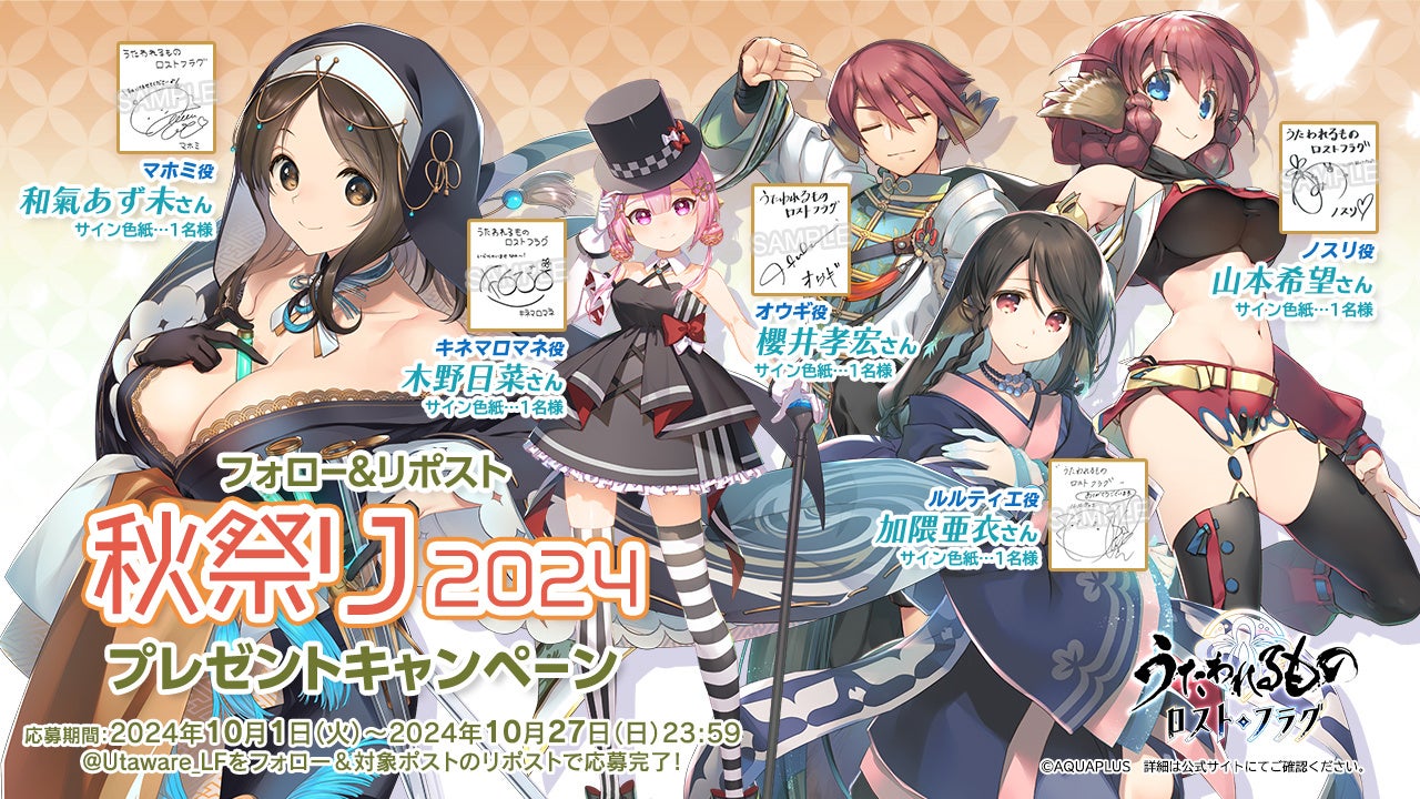 また、豪華声優陣の「直筆サイン入り色紙」が当たる「フォロー&リポスト 秋祭り2024プレゼントキャンペーン」も開催されます。