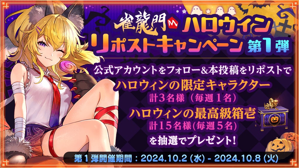 『雀龍門M』イベント「ハッピーハロウィン!麻雀しないと食べちゃうぞ~」が開催!イベントに参加して限定アバターやアイテムを手に入れよう!イベント開催を記念したSNSキャンペーンも同時開催!