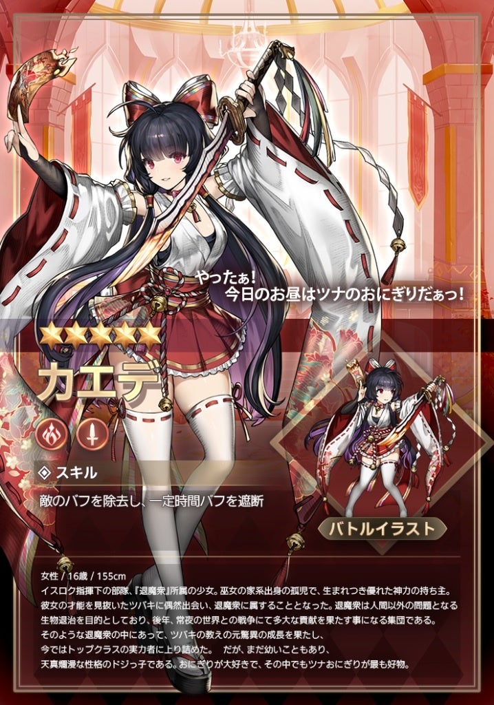 - カエデは敵にダメージを与え、バフを除去する攻撃型騎士