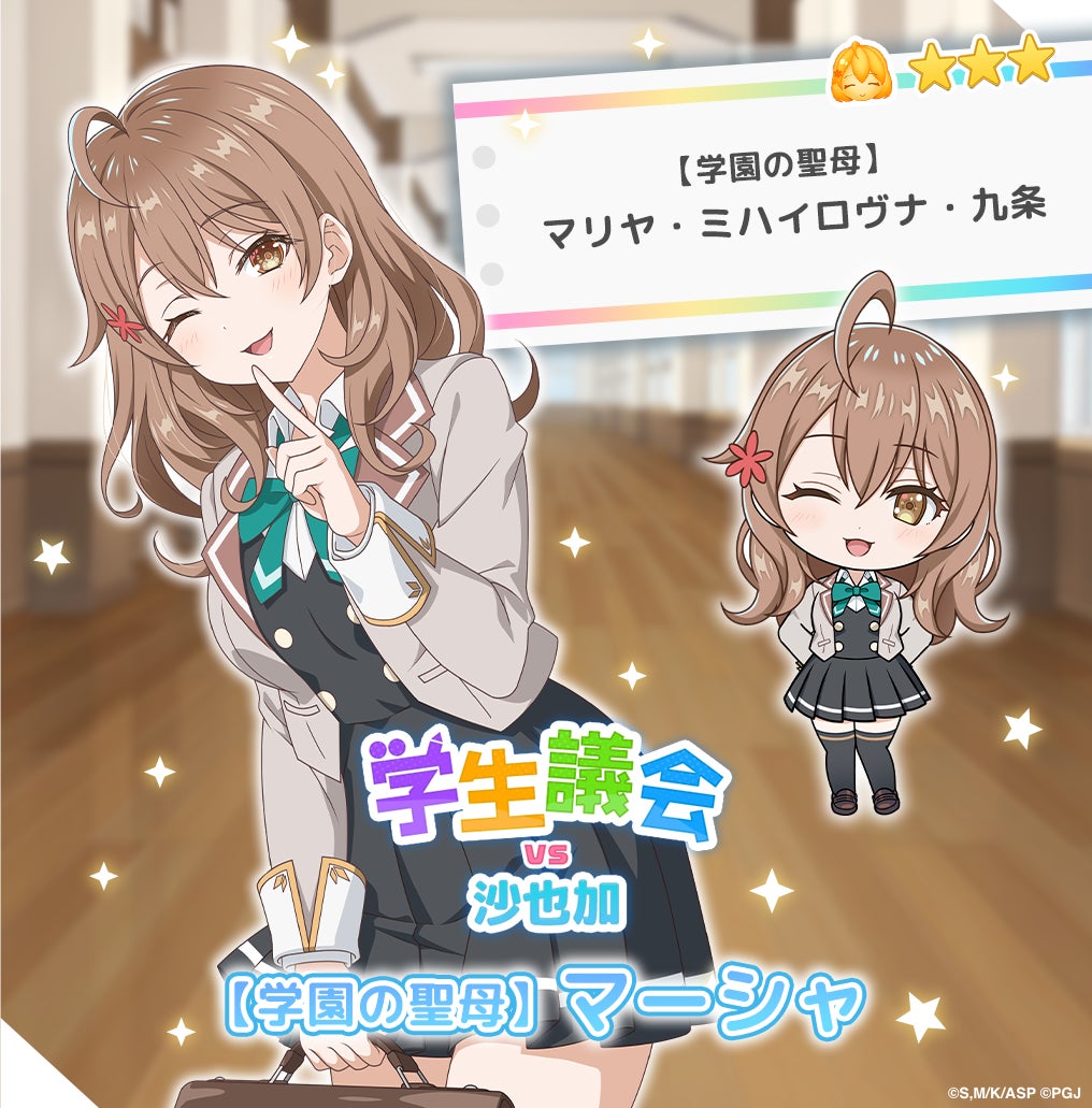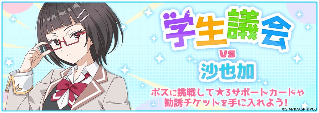 - 9月30日よりランキングイベント「学生議会 vs 沙也加」が開催中で、期間中のスコアに応じて報酬が獲得できる。