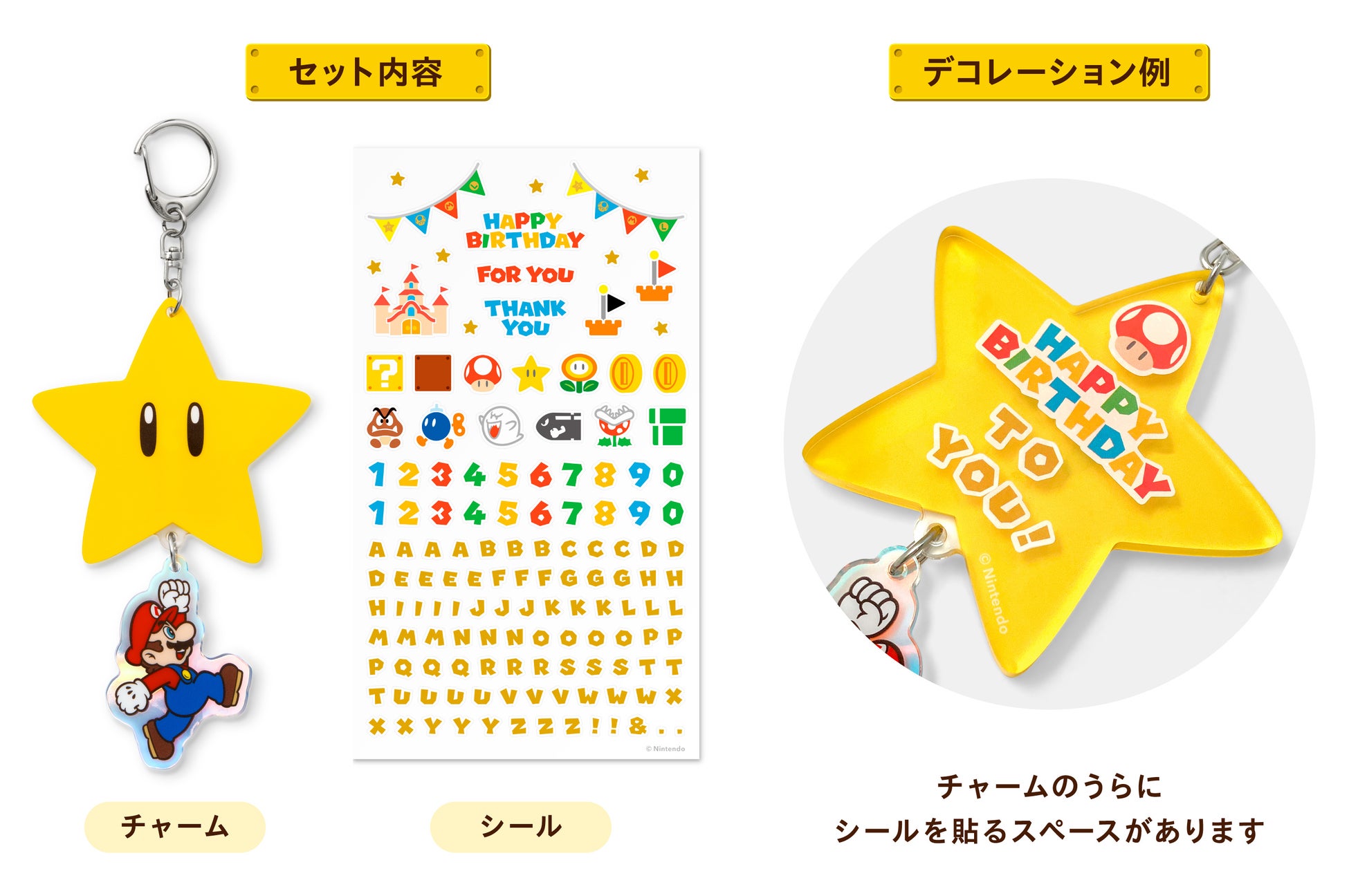 デコレーションチャームは、アクリル製のチャームと数字やアルファベットのシールがセットになっており、誕生日メッセージやネームプレートを作ることができます。