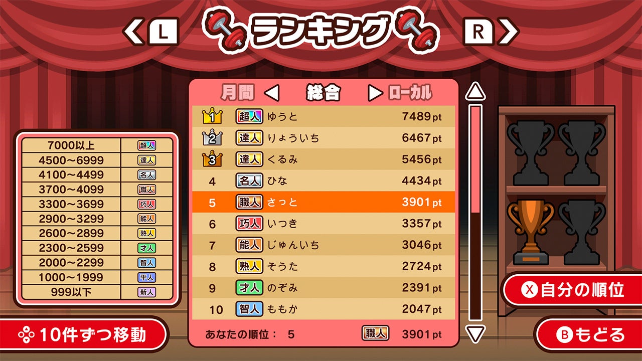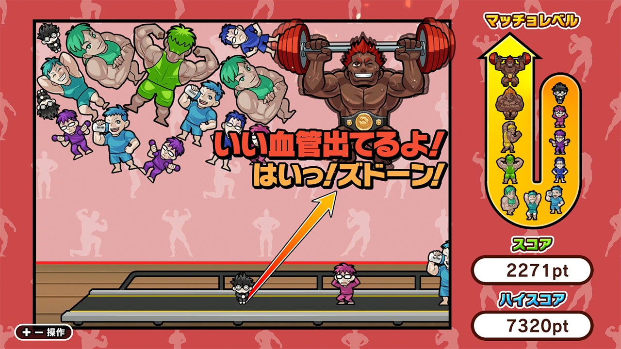 1人でも世界ランキングに挑戦できる「スコアアタックモード」では、鍛えたマッチョを駆使してベストスコアを叩き出し、ランキング上位を目指しましょう。