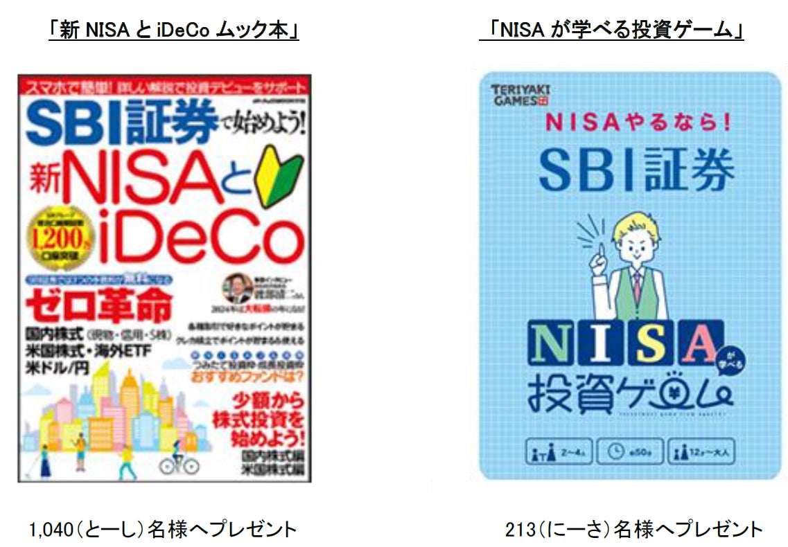 - キャンペーンでは、アンケート回答で「新NISAとiDeCoムック本」や「NISAが学べる投資ゲーム」が当たる。