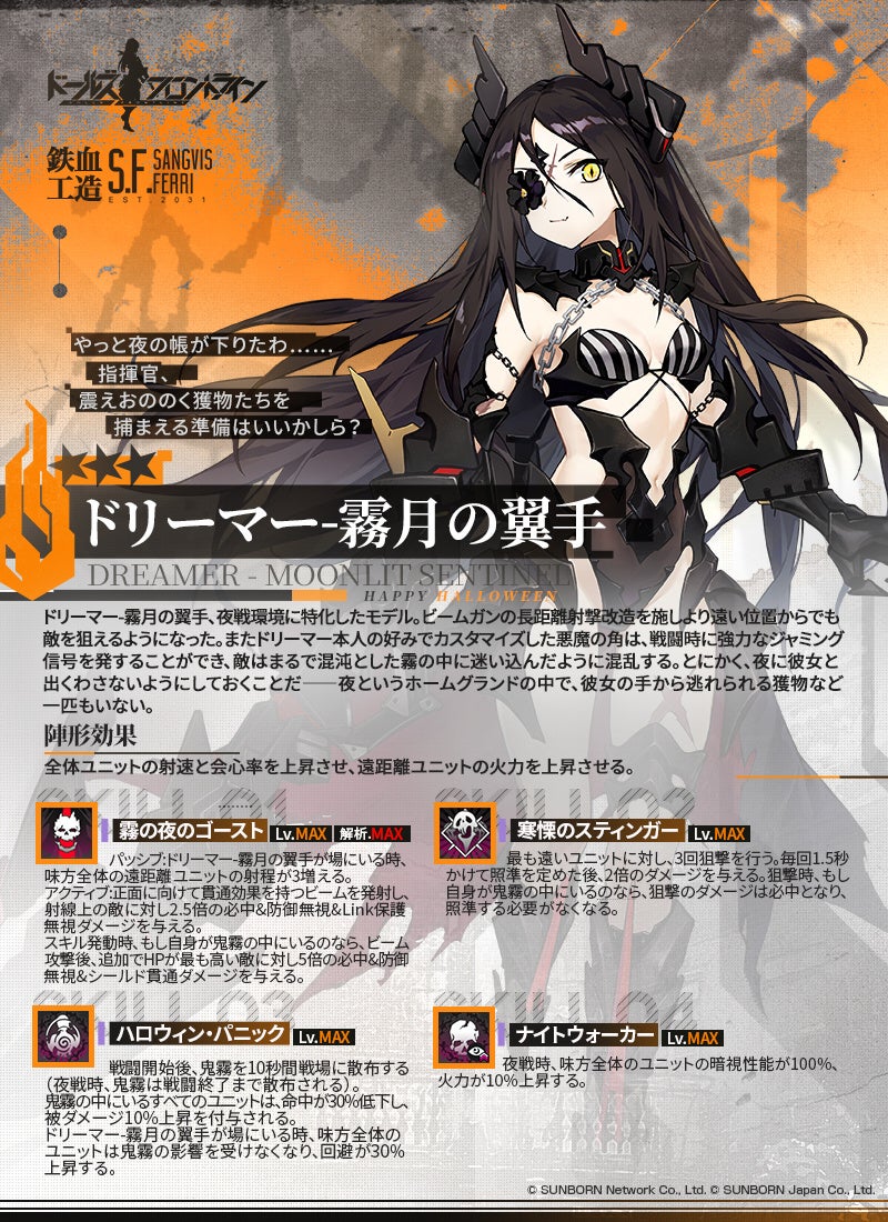 この区域では、夜戦環境に特化した新たな★3ユニット「ドリーマー-霧月の翼手」を捕獲できます。