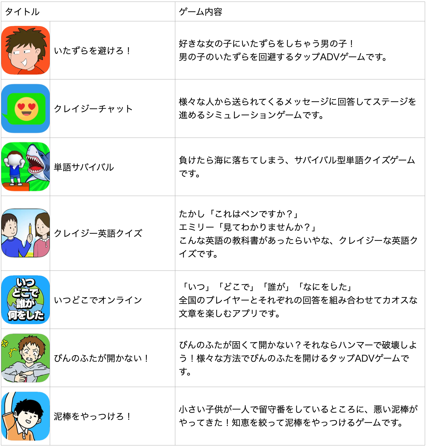 約半数のアプリがランキング1位になっており、現在約40作品をリリースしています。