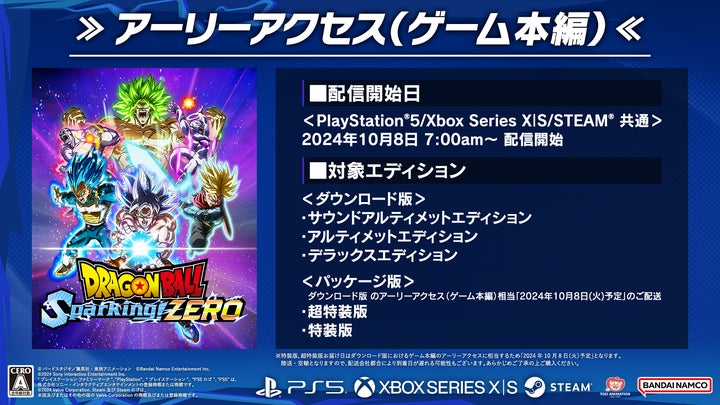 - 「ドラゴンボール Sparking! ZERO」のアーリーアクセスが本日10月8日(火)より開始