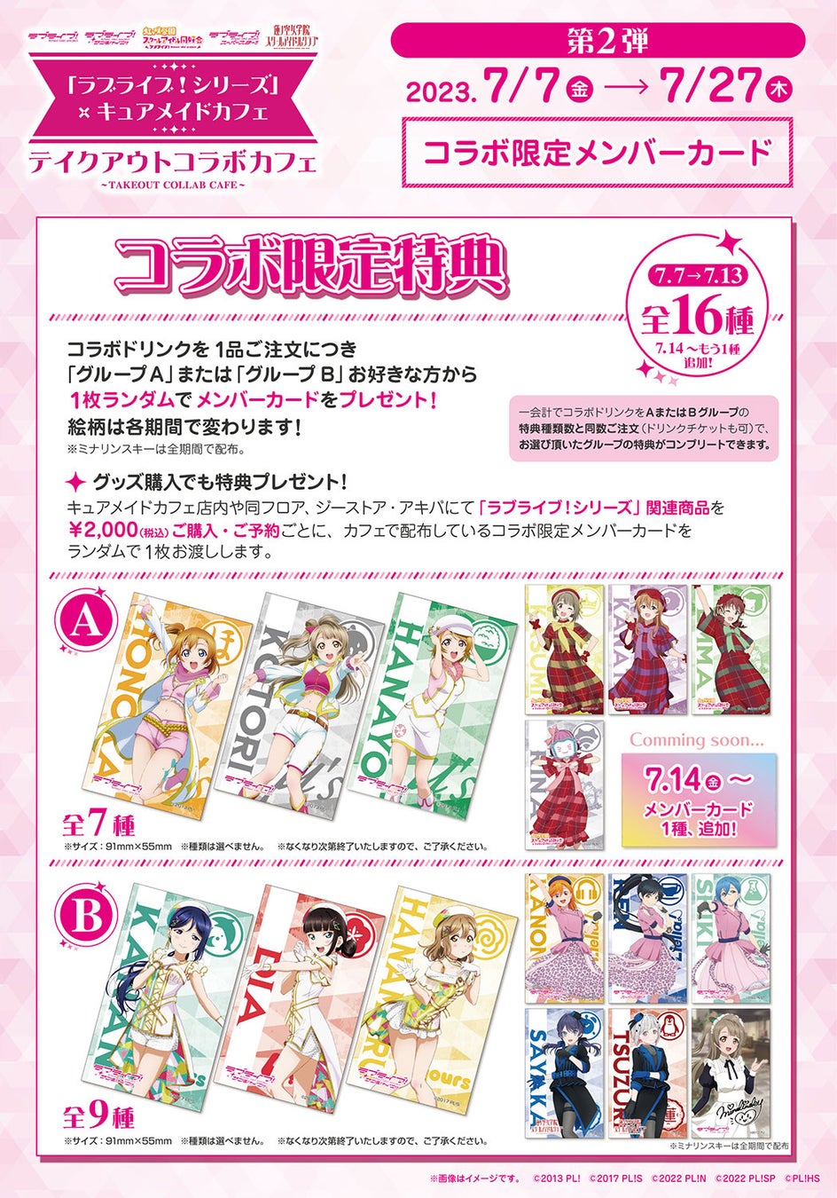 - タブリエ・マーケティング株式会社が展開するキャラクター・ライフスタイルストア「ジーストア」の中の「CURE MAID CAFÉ」で、「ラブライブ!シリーズ」テイクアウトカフェが開催される