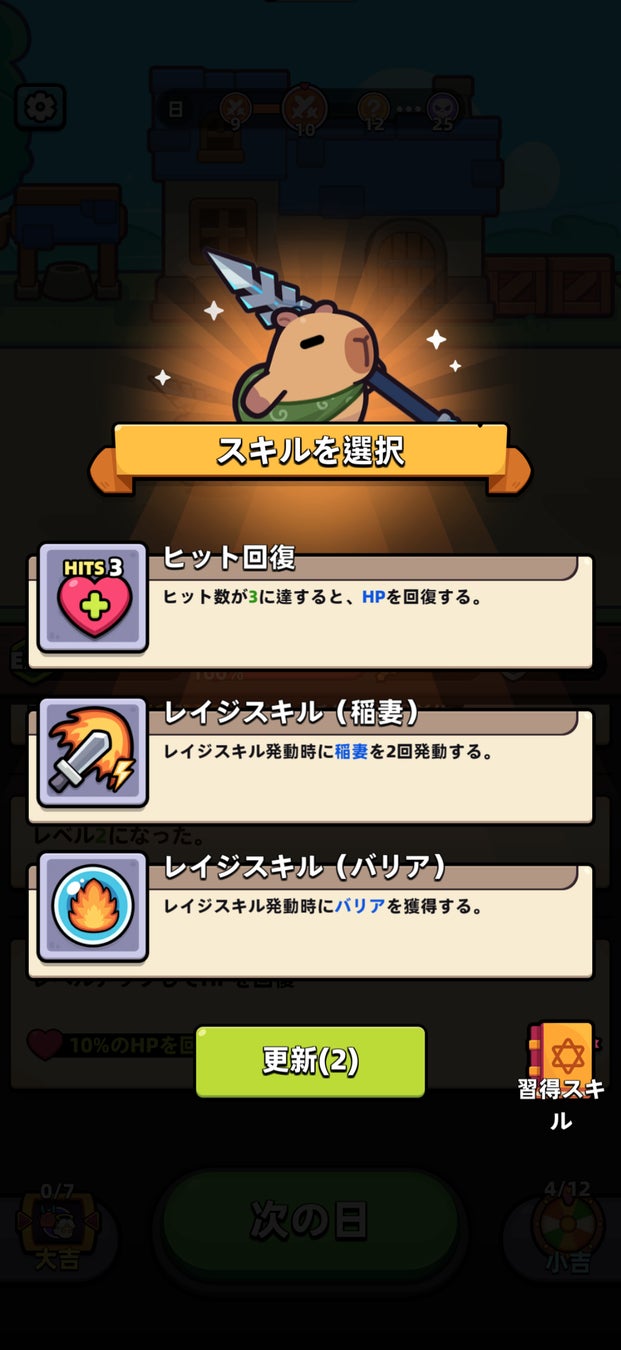 育成システムはシンプルながら奥深く、スキルを組み合わせることで個性的なカピバラを育成することができる。