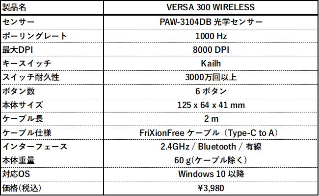 - 有線接続と無線接続の両方に対応したゲーミングマウス「VERSA 300 WIRELESS」が発売。