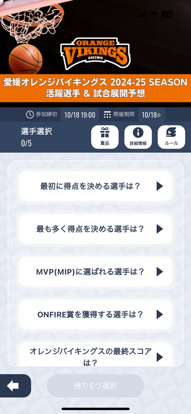 • 愛媛オレンジバイキングスの10月18日、19日のホームゲームで活躍選手や試合展開を予想するイベントを開催