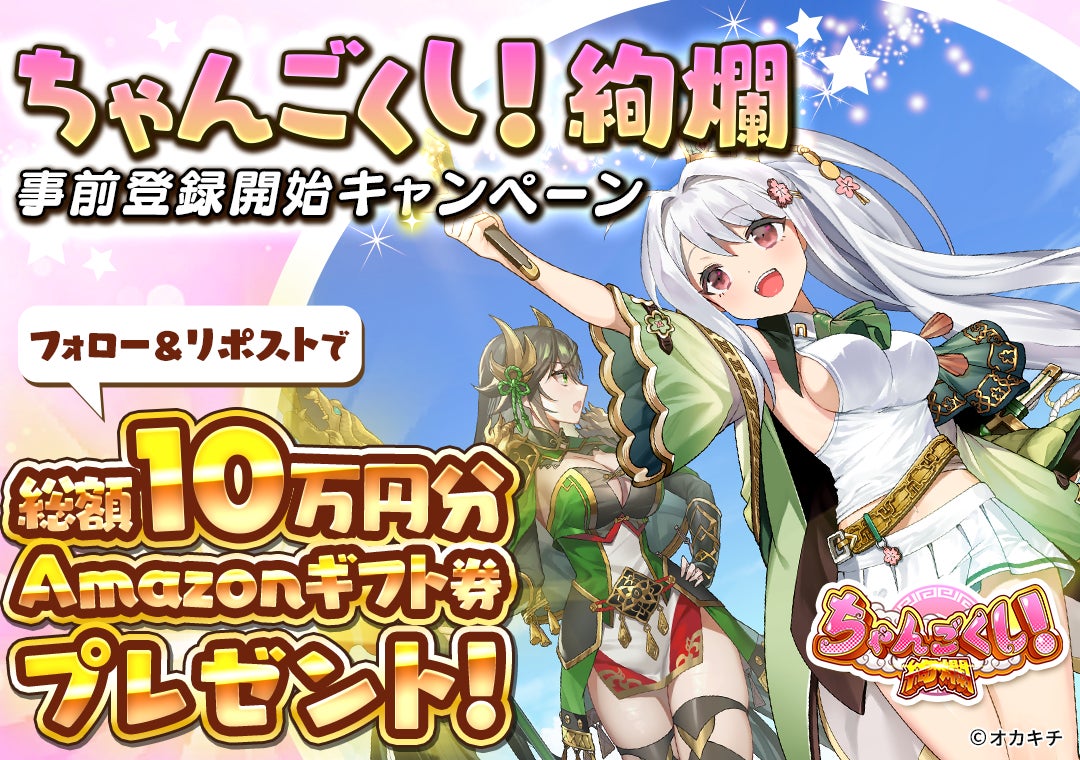 株式会社オカキチは、オリジナルNFTゲーム『ちゃんごくし!』シリーズの第2弾タイトル『ちゃんごくし!絢爛』の事前登録を10月18日より開始した。