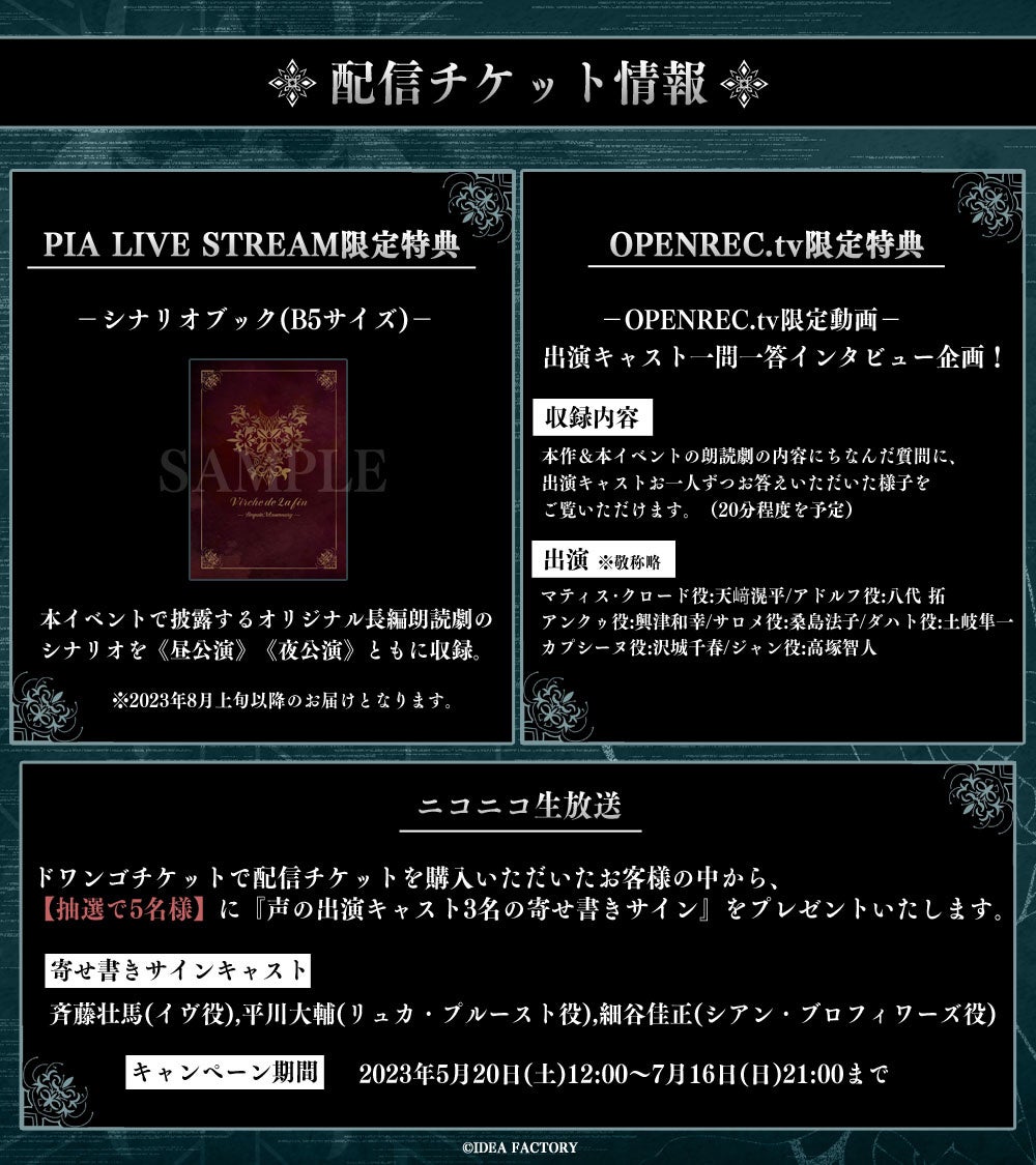 配信チケットはPIA LIVE STREAM、OPENREC.tv、ニコニコ生放送で購入可能です。