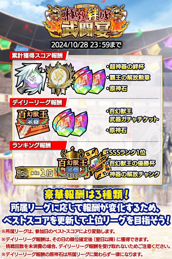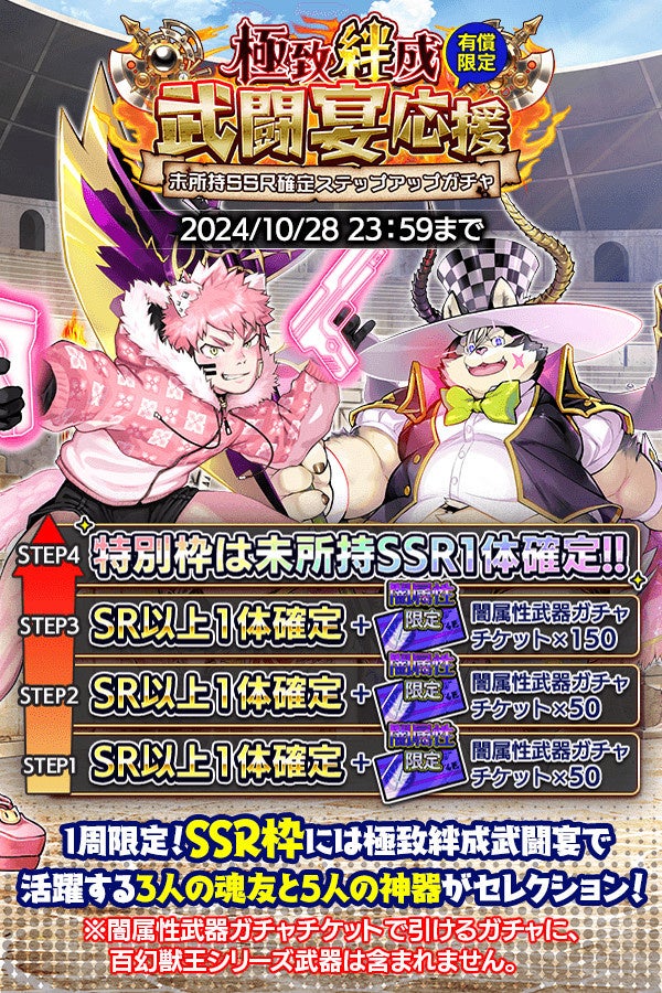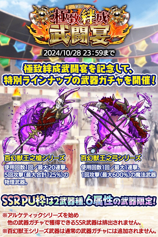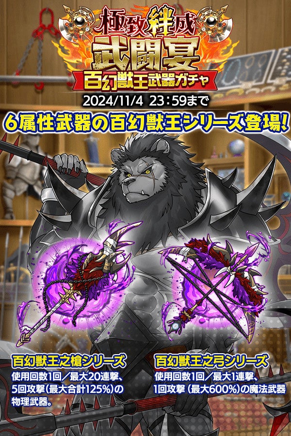 - イベント限定武器ガチャ「極致絆成武闘宴百幻獣王武器ガチャ」開催!