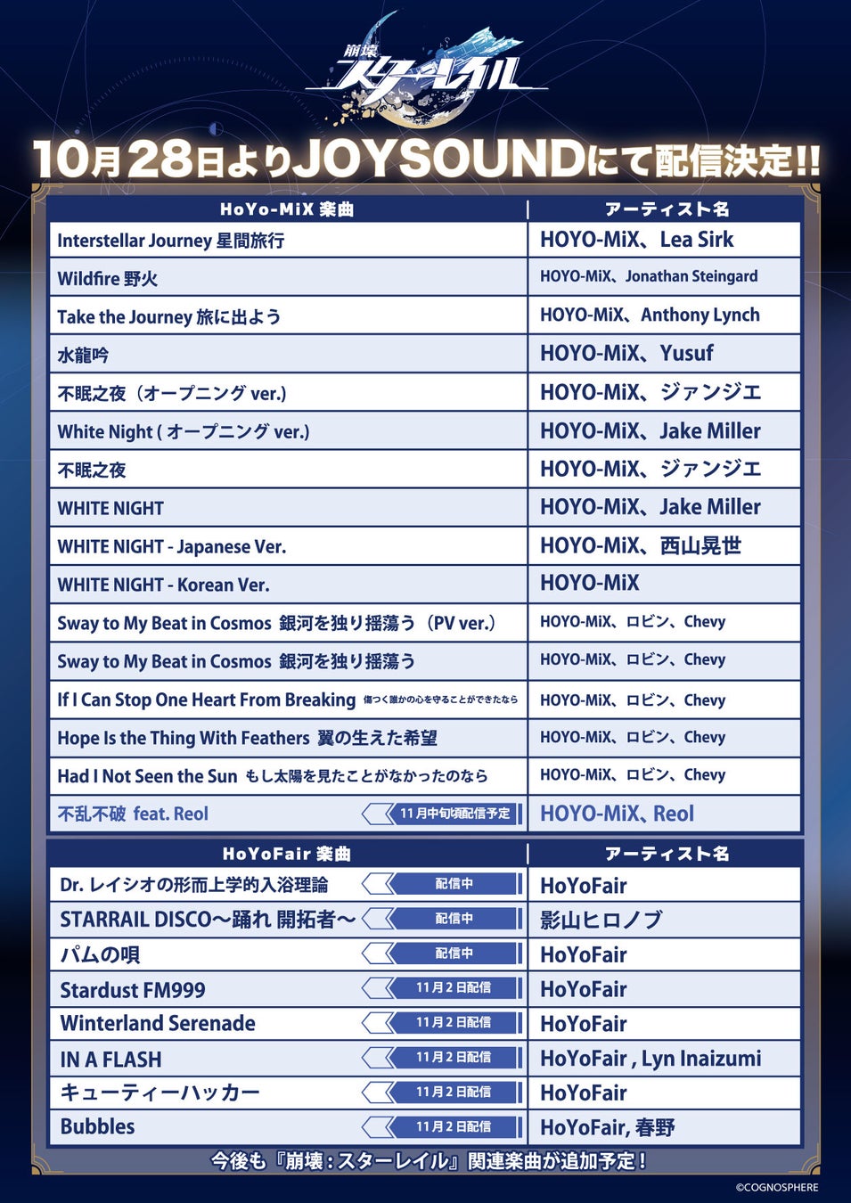 ゲーム楽曲のカラオケ配信も決定し、JOYSOUNDにて10月28日(月)から配信開始。