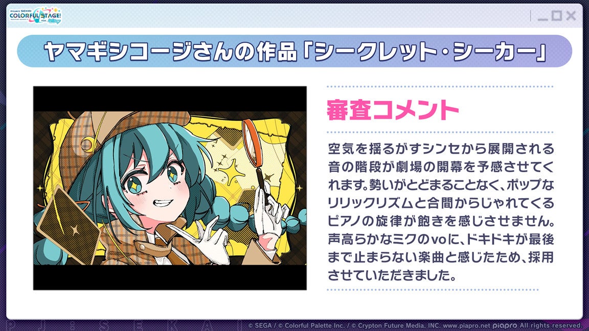 - 「第24回楽曲コンテストプロセカNEXT」の採用作品発表