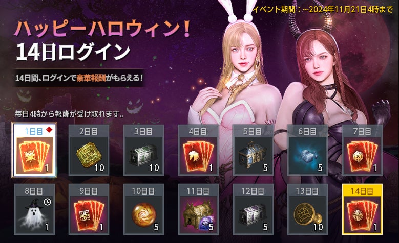 さらに、ログインボーナスやハロウィンボス討伐イベントも開催され、大量のゴールドや特別なハロウィンアイテムを獲得できます。