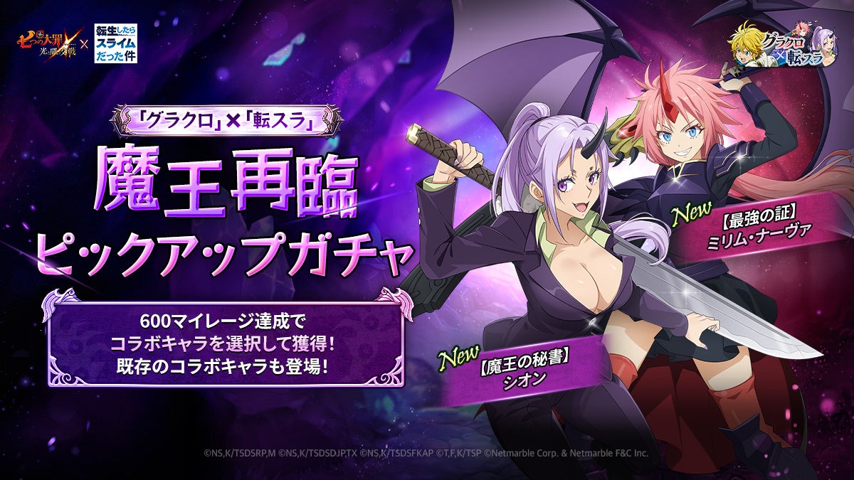 - 『七つの大罪 ~光と闇の交戦~』と『転生したらスライムだった件』のコラボイベント「魔王再臨」開催