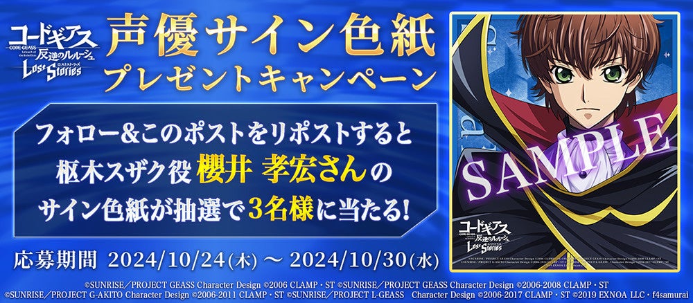 期間中はスザク役 櫻井孝宏さんのサイン色紙が当たるキャンペーンも開催される。