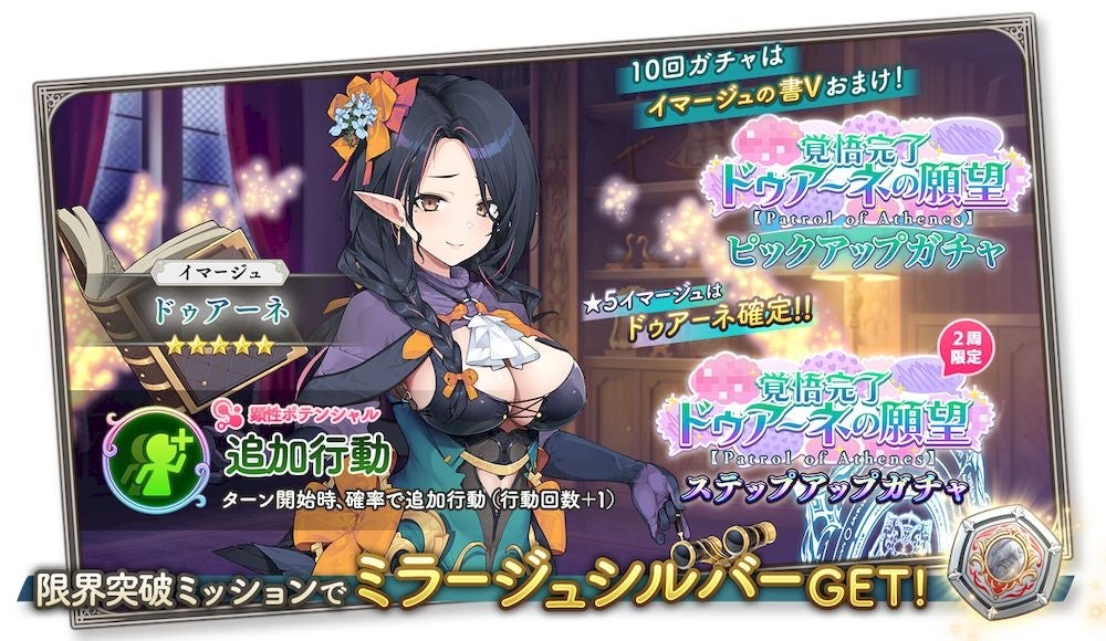 さらに、イベント限定のピックアップガチャも開催され、★5イマージュ「ドゥアーネ」を獲得できる5ステップアップガチャも同時開催されます。