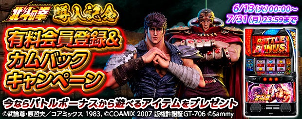 - スマスロ北斗の拳導入記念の有料会員登録&カムバックキャンペーンも開催