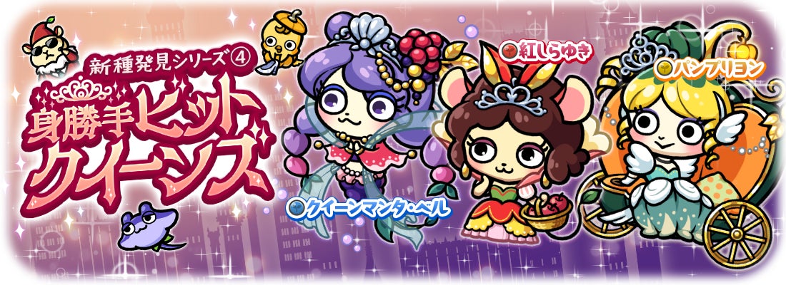 さらに、ガチャシリーズ「身勝手ビットクイーンズ」も開催され、シンデレラ、白雪姫、人魚姫をモチーフにしたキャラクターが登場します。
