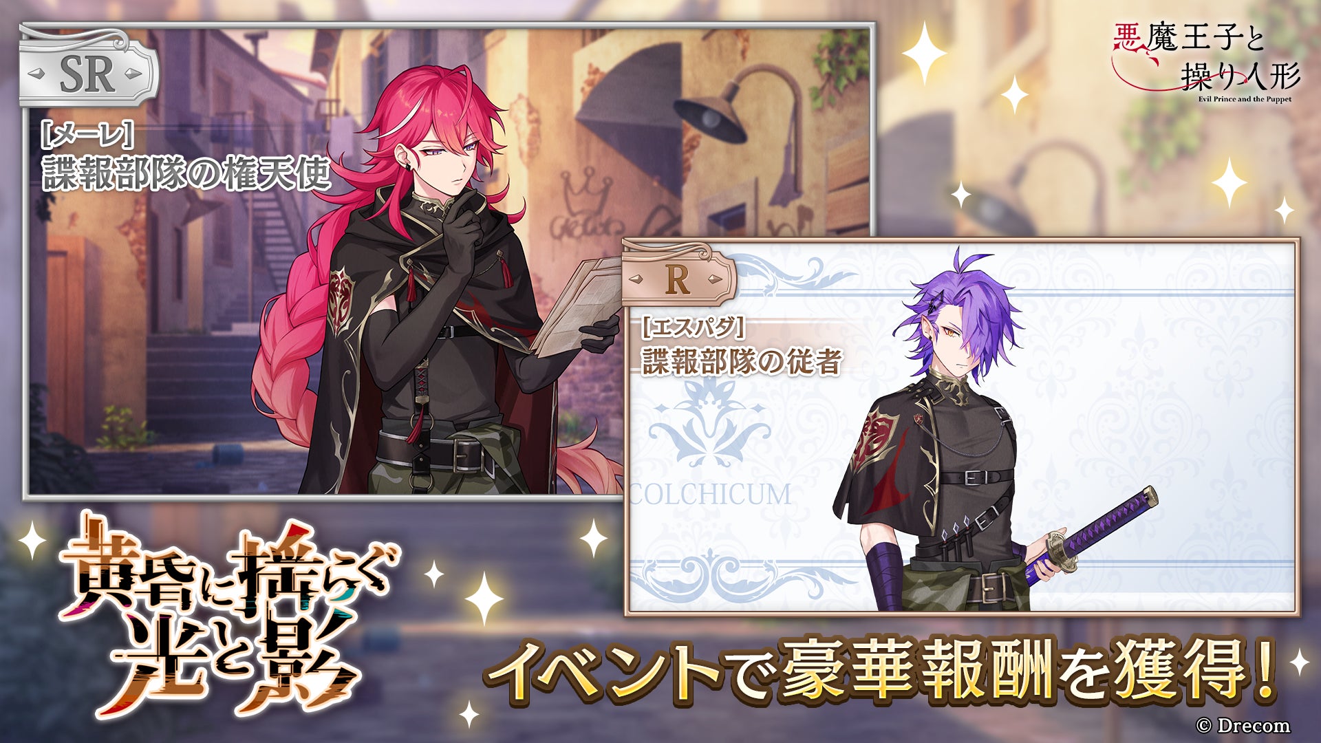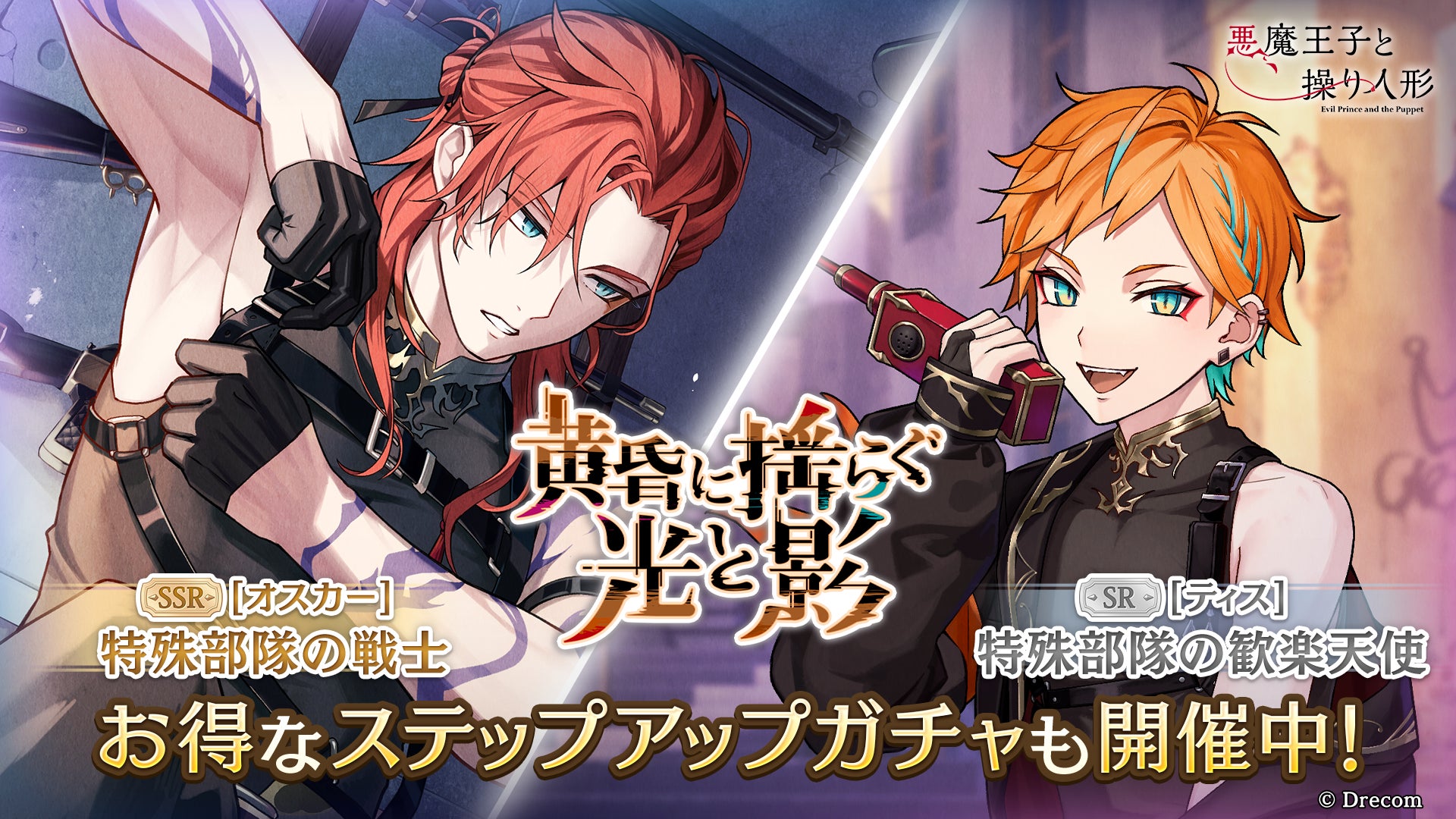 「悪魔王子と操り人形(あくあや)」で、期間限定イベントガチャ「黄昏に揺らぐ光と影」が開催。