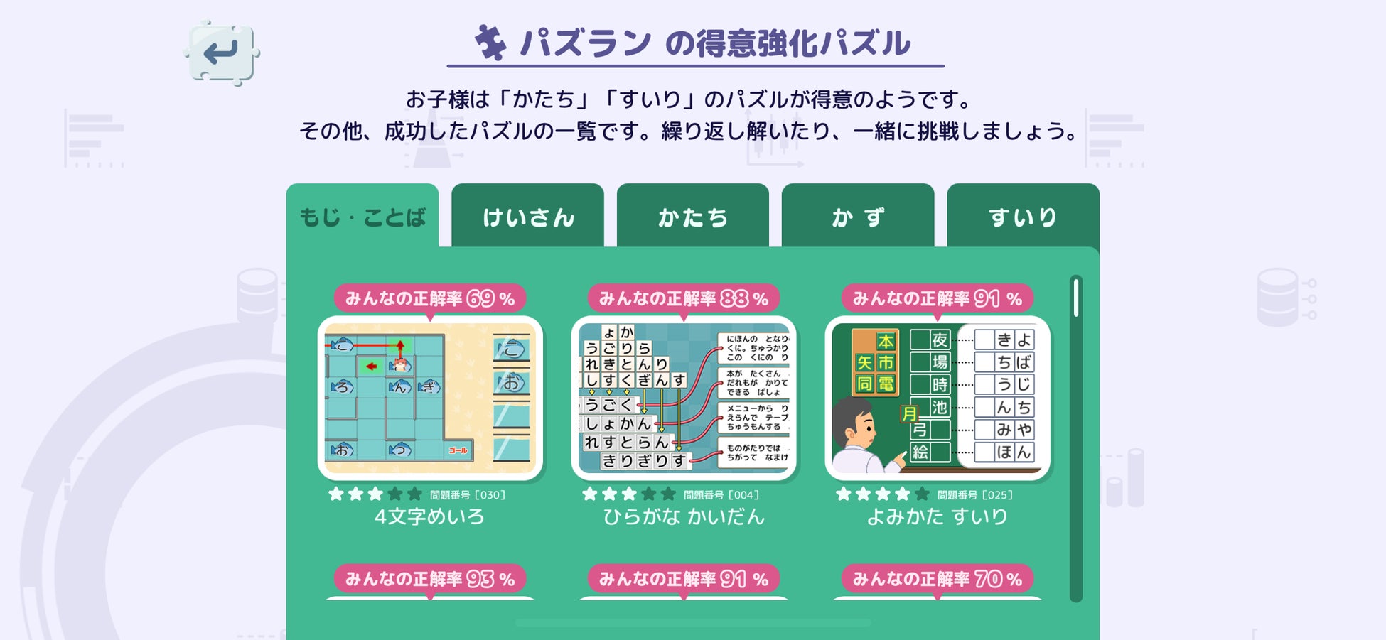 リニューアルでは、AIによる学習分析機能が強化され、子供の感情コントロールをサポートする『気持ちパズル』が追加された。