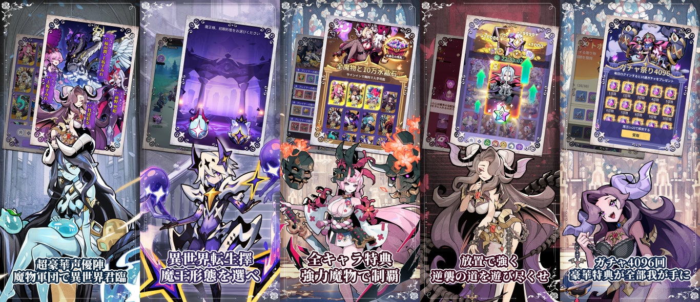 福山潤、前野智昭、竹達彩奈など人気声優が演じる魔物キャラクターが登場し、プレイヤーはこれらの魔物を収集・育成して、最強の魔王を目指します。