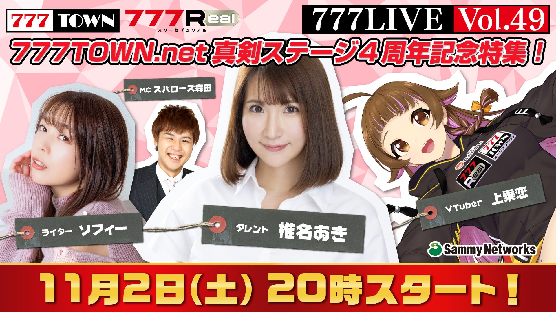 11月2日(土)20時から、777TOWN.net「真剣STAGE」の4周年イベントを紹介する生放送「777LIVE Vol.49」が開催されます。