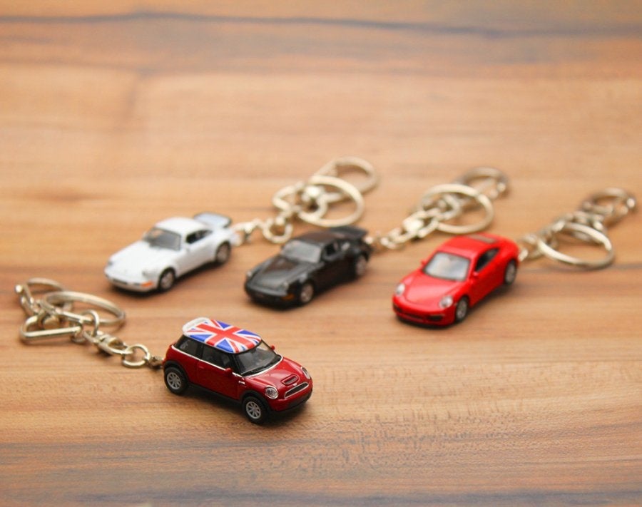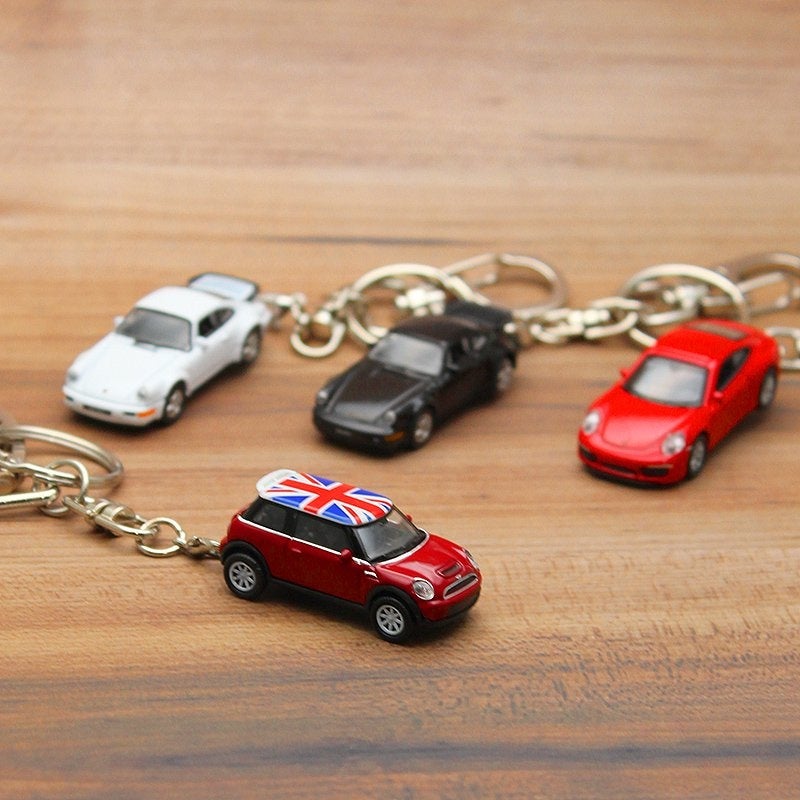 - MINI Cooper、Porsche、LEDライト付きキーチェーン、ミニカー