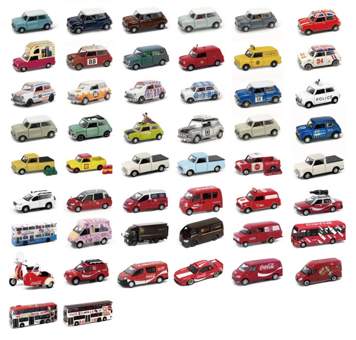 - ミニチュアなサイズで再現されたミニカー