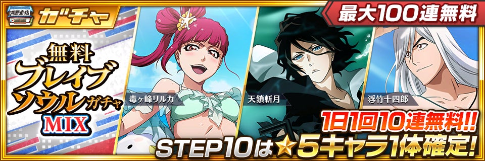 期間中は、新キャラが当たるガチャや、無料ガチャも開催されます。