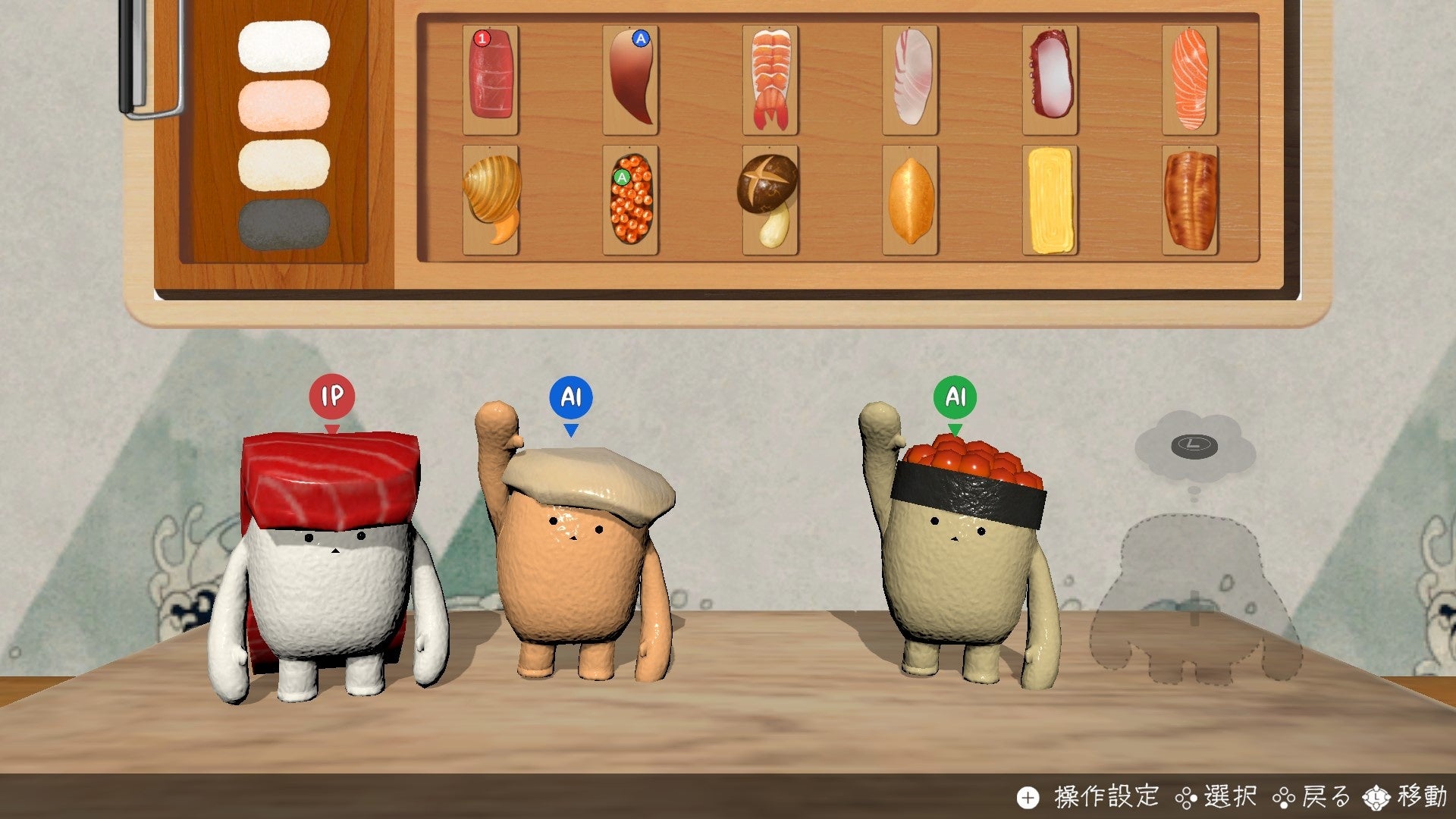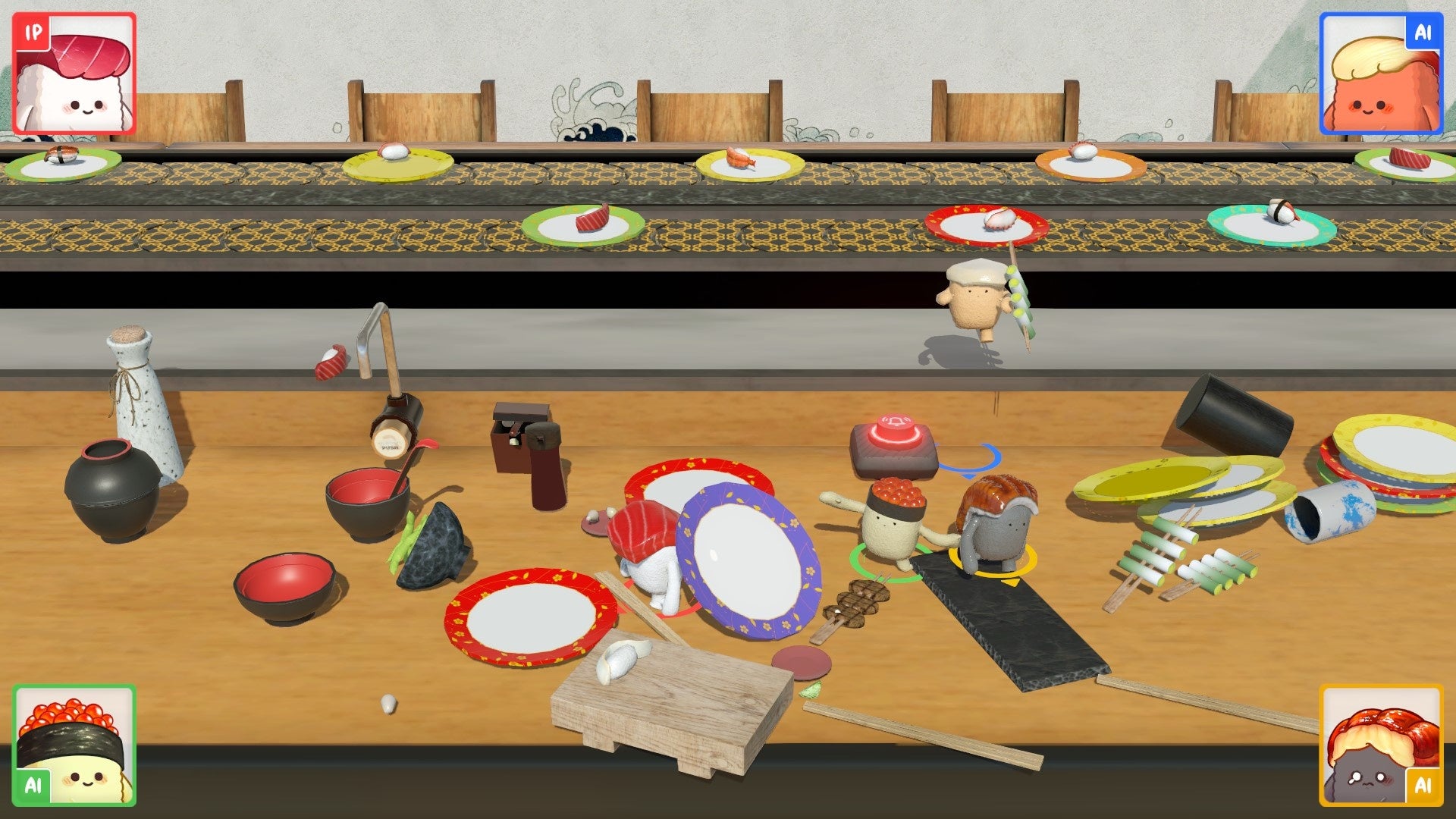 『スシ・バトル・ランバングシャスリ』は、4人同時対戦のパーティーゲームで、可愛らしい寿司キャラクター「シリモン」が戦うバトルロイヤルゲームです。