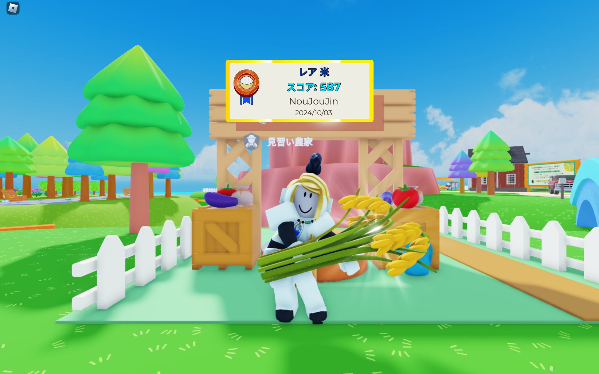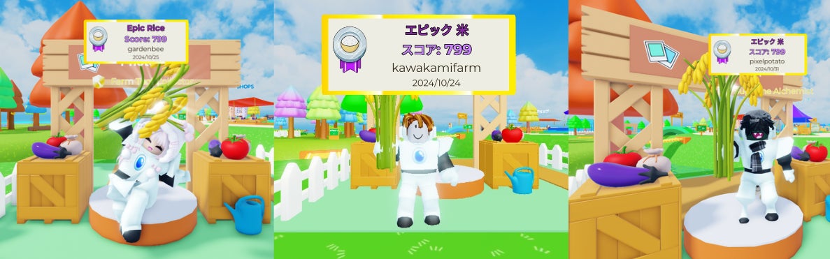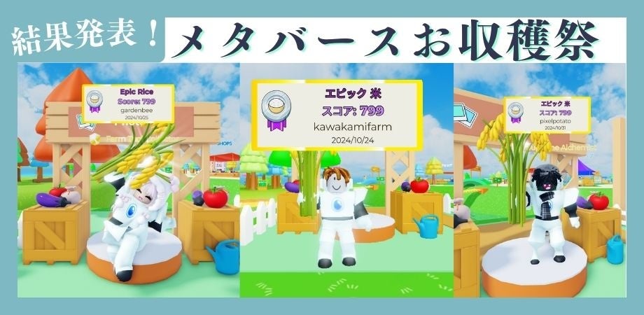 農業×web3を推進するコミュニティ「Metagri研究所」は、メタバースプラットフォーム「Roblox」上で展開する農業シミュレーションゲーム「未来の農業シミュレーター」において、2024年10月10日から10月31日までの期間に「お米収穫祭 in メタバース」を開催しました。