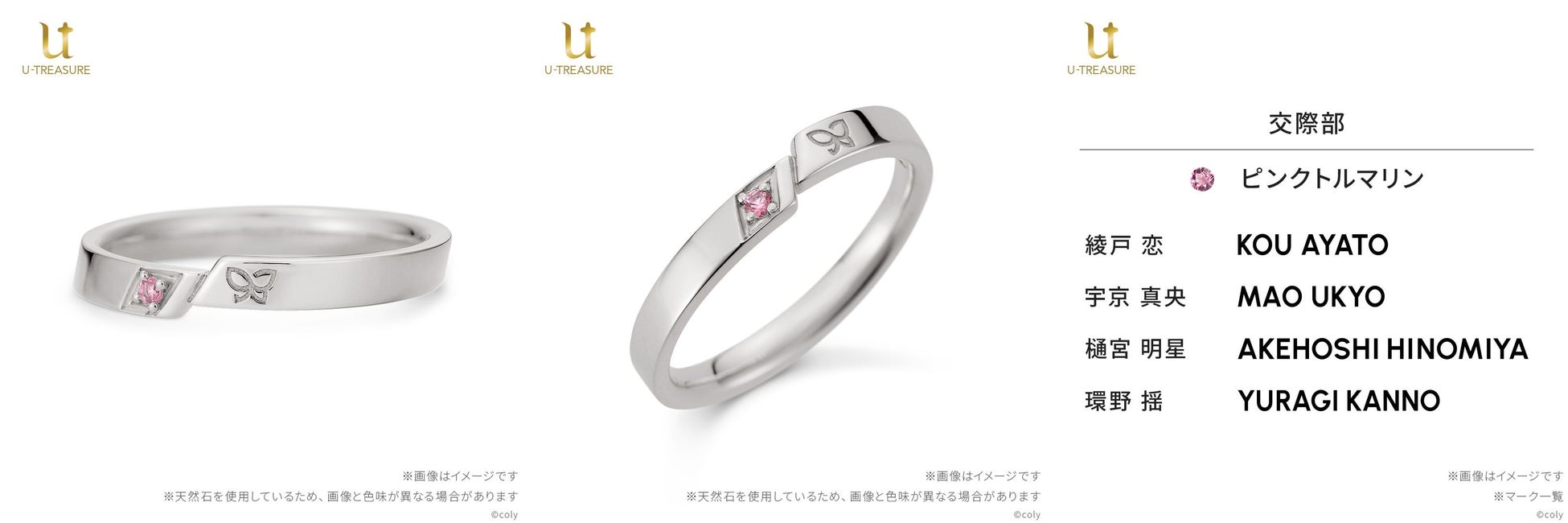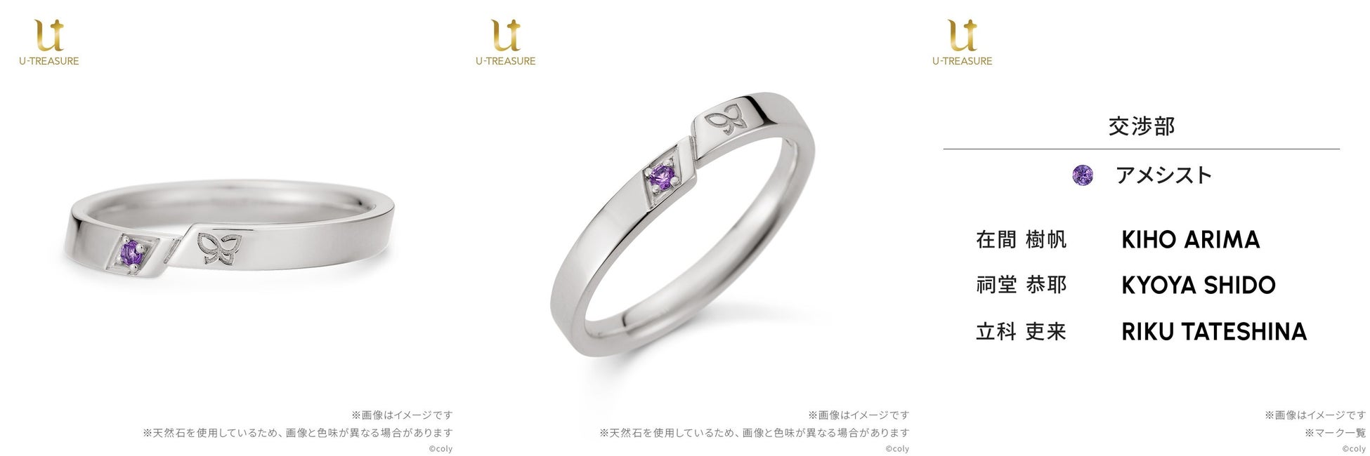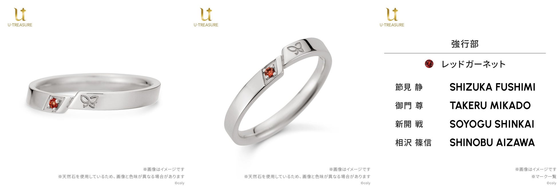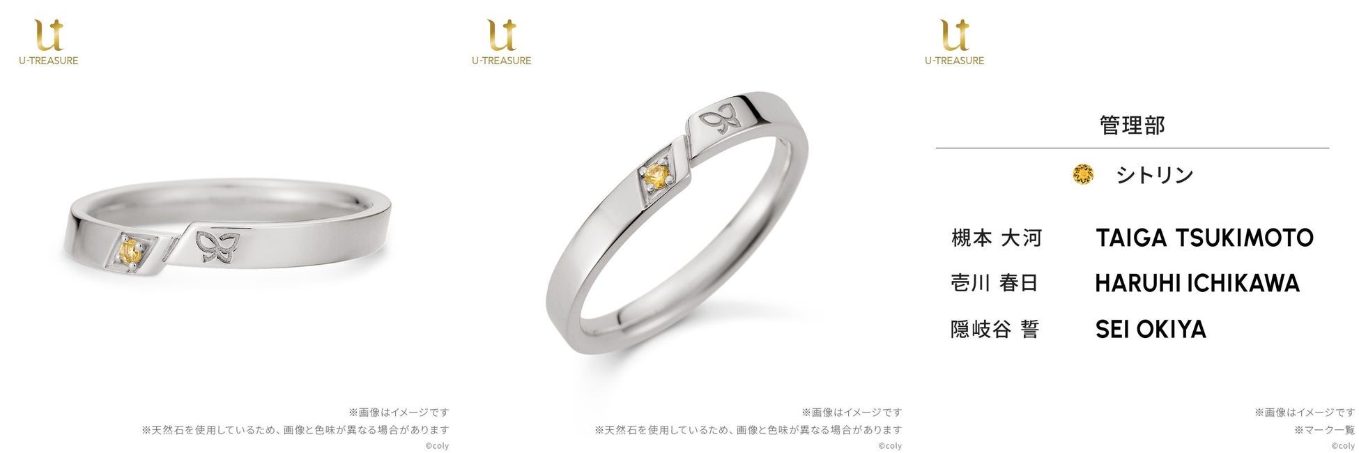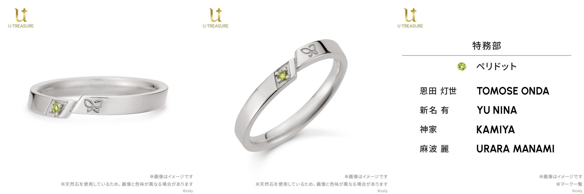 リングは、ゲームに登場するAporiaの21名のスタッフから好きな名前を刻印できるほか、所属部署をイメージした天然石が輝くデザインとなっています。