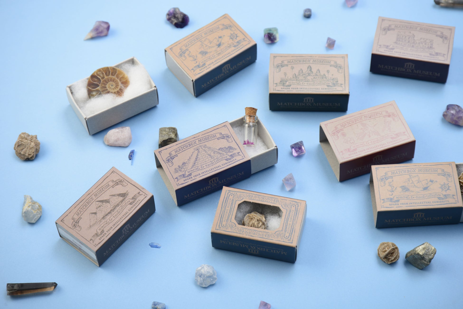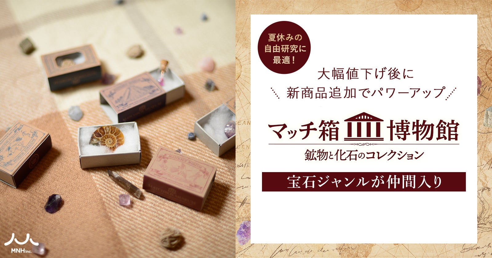 - 株式会社MNHが販売する科学雑貨『マッチ箱博物館 鉱物と化石のコレクション』に新たなコレクションが追加されました