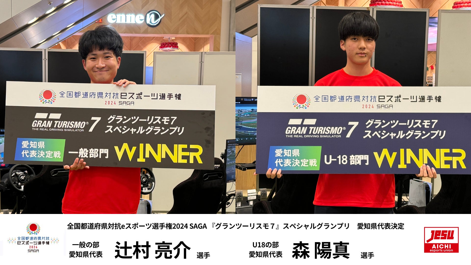 2024年11月2日、全国都道府県対抗eスポーツ選手権2024 SAGA『グランツーリスモ7』スペシャルグランプリ愛知県代表決定戦が開催され、U-18の部では森陽真選手、一般の部では辻村亮介選手がそれぞれ代表に決定しました。