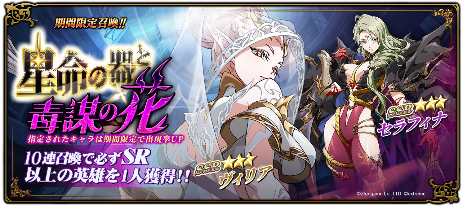 - 新英雄「ヴィリア」と「セラフィナ」が登場し、期間限定召喚『星命の器と毒謀の花』が開催される。