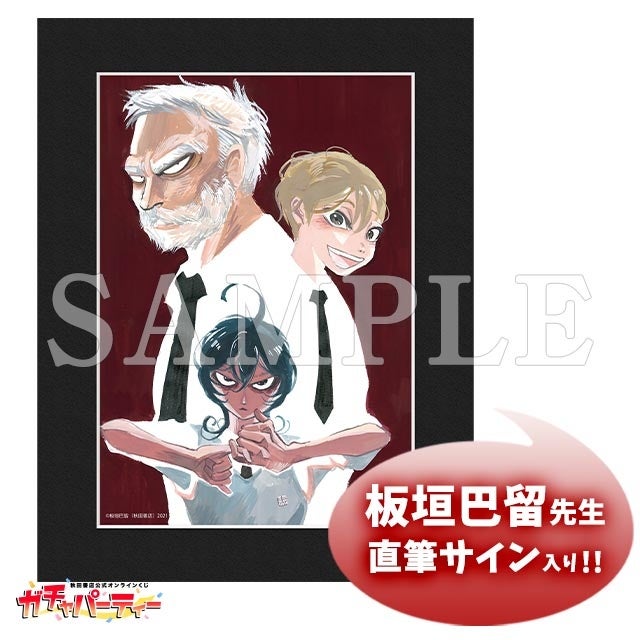 高精細複製原画やアクリルジオラマ、アクリルマグネット、缶バッジなどが賞品として用意されており、10枚購入するごとにランダムでクリアカードが当たる特典や、抽選で10名に板垣巴留先生直筆のサインが入った高精細複製原画が当たる特典もある。