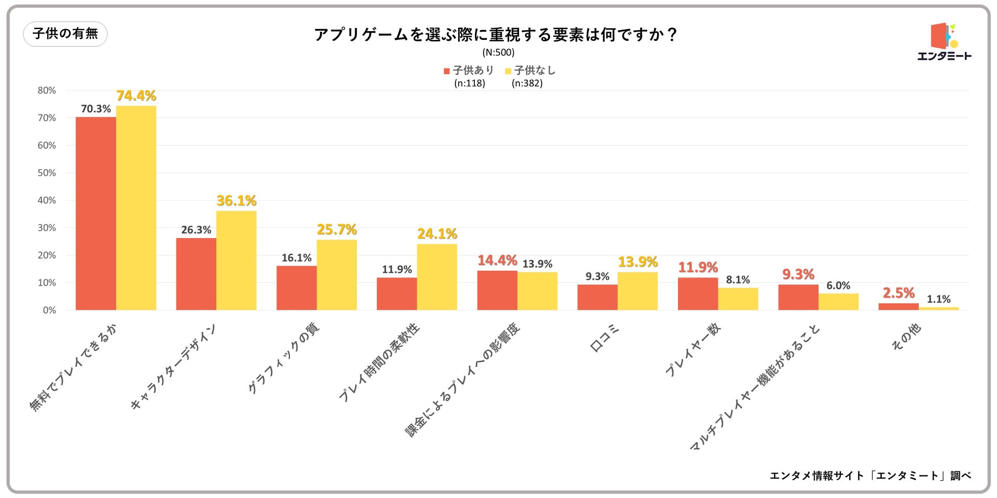 子供の有無では、子どもがいる人は、子どもと一緒にプレイできるかどうかを重視する傾向が見られました。
